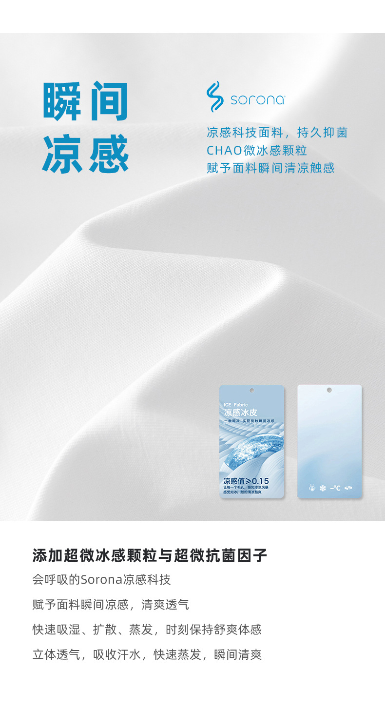 接触凉感:面料自带瞬间导凉特性,炎热环境下体感降温显著。